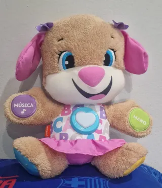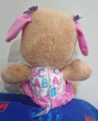 Perrita de peluche interactiva de Fisher-Price. - Peluche suave y abrazable. - Botones interactivos en patas y barriga. - Incluye música y frases educativas. - Funciona - Va con pillas Más cosas en mi perfil