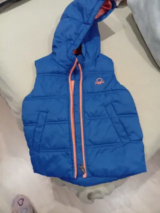 Chaleco acolchado para niño en color azul brillante. Cuenta con capucha y forro interior en tono coral. - Cierre frontal con cremallera. - Logo de la marca en color coral. - Bolsillos laterales.
