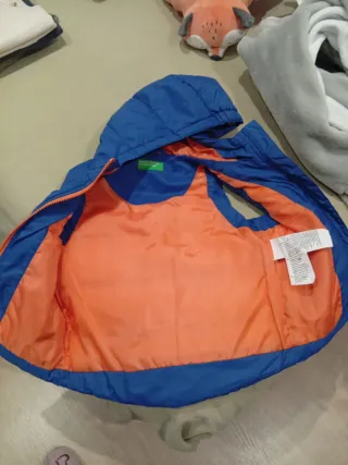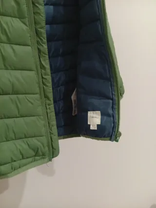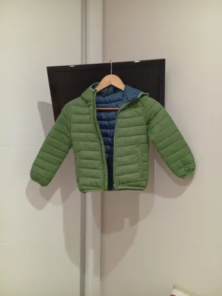 Chaqueta infantil reversible, ideal para el frío. - Color exterior verde. - Color interior azul. - Con capucha.