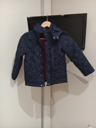 Chaqueta acolchada para niño en color azul marino. Perfecta para el frío. - Diseño acolchado con rombos. - Forro interior en color rojo. - Cierre de botones a presión. - Capucha incorporada.