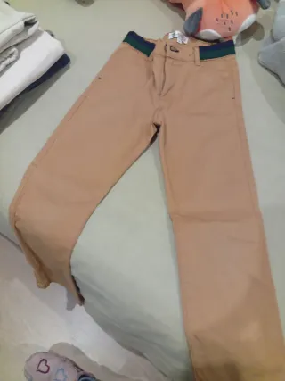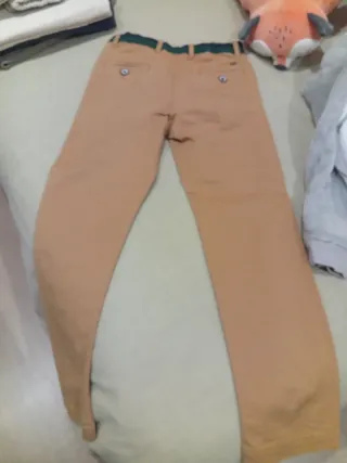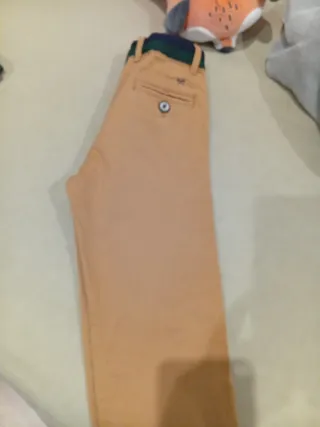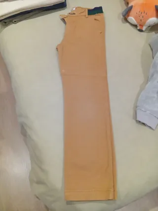 Pantalón tipo chino para niño en color camel. - Talla 6. - Cintura con trabillas y cierre de botón y cremallera. - Bolsillos delanteros y traseros.