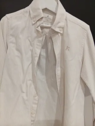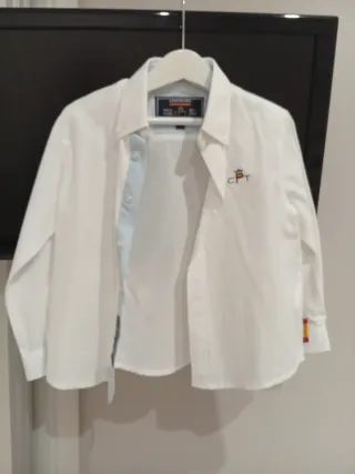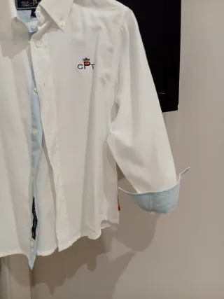 Camisa de manga larga para niño. - Color blanco. - Talla 6. - Cuello camisero. - Detalle de logo bordado en pecho. - Raya azul en tapeta y puños.