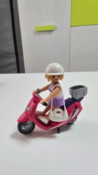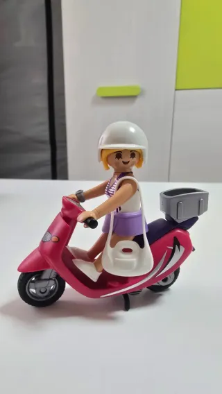 Set Playmobil de una mujer con su moto. En perfecto estado, sin caja original.