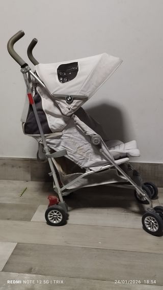 Silla de paseo ligera y plegable, edición especial BMW MCLAREN Buggy. Color plateado. Peso máximo 15 kg Peso básico: 5.7 kg/12.4 lb Múltiples posiciones de respaldo para 6 m+ Suspensión en las 4 ruedas Capota resistente al agua: incluye un bolsillo y una ventana de malla para poder controlar al bebe; larga, con factor de protección solar UPF +50