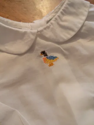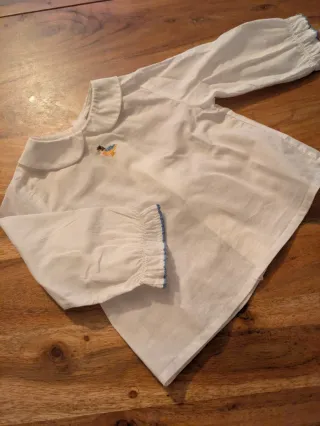 Camisa blanca para bebé de la marca COCONUT. - Cuello redondo camisero - Abotonada en la espalda - Pequeño bordado de un pato en la parte delantera. - Mangas acabadas en gomita con pespunte en azul. Totalmente nueva. Sólo una puesta. Precio de compra 29.95€