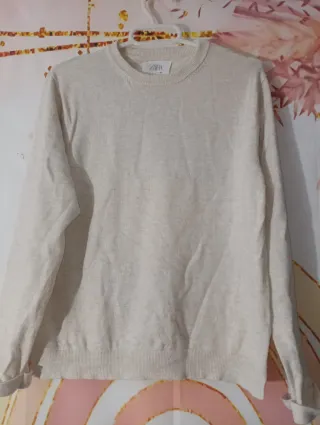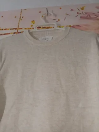 Jersey de punto fino de Zara para niño o niña. - Color beige jaspeado. - Cuello redondo. - Manga larga. - Puños y bajo de canalé.