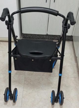 Andador Elite 3G en color negro y azul. Es plegable y cuenta con una bolsa absolutamente como nuevo precio original 143€ - Estructura de aluminio. - Ruedas delanteras giratorias. - Frenos de presión. - Asiento y respaldo acolchados.