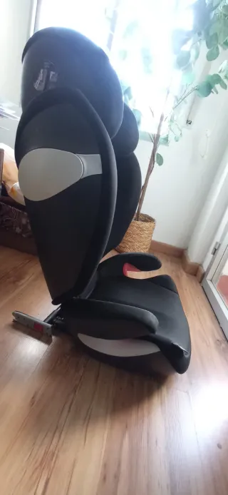 Silla de coche Cybex en color negro. - Diseño ergonómico. - Reposacabezas ajustable. - Acolchado para mayor comodidad. -Regulación lateral para ajustar los lados de la sillita a la puerta del coche. -Isofix. -Regalo acople cinturón para poner en cruz (última foto).