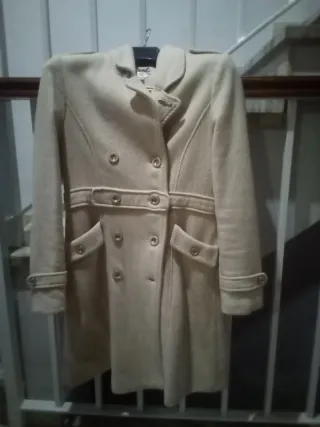 Abrigo de doble botonadura para niña. - Diseño clásico con solapas. - Puños abotonados. -Color crudo -50% lana , 50% poliéster