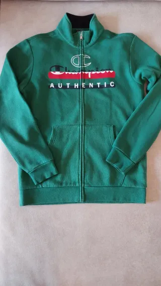 Conjunto de chándal Champion para niño de 13 a 14 años (162/167 cm) sudadera de color verde y pantalón negro ambos v9n bolsillos y terminados en puño y con pelito por dentro. Tiene un poco de bolitas