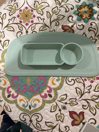Plato de silicona de la marca Stokke, ideal para las comidas de los más pequeños. Su diseño permite separar los alimentos. - Material: Silicona. - Color: Verde menta.