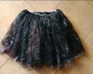 Falda de tul negra, ideal para disfraces. - Diseño con detalles brillantes. - Cintura elástica para mayor comodidad. Sirve para talla 8-9 Nuevísima!!