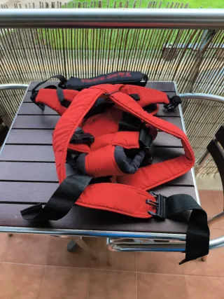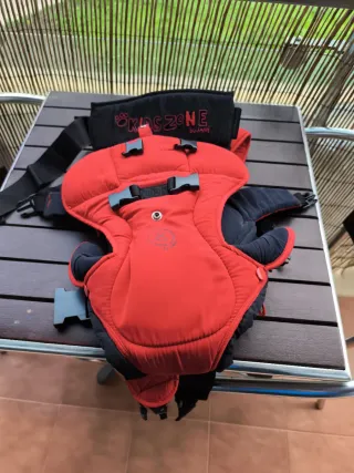 Portabebés ergonómico de la marca Jane, modelo Kids Zone. - Color rojo y negro. - Cinturón lumbar ajustable. - Hebillas de seguridad.