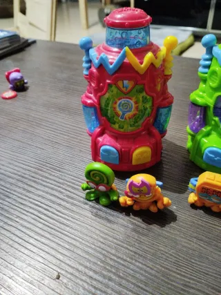 Se venden torres de Superthings. - Incluye torre roja (,piruletas), torre azul (videoconsolas) y torre verde (relojes). - Figuras pequeñas de Superthings incluidas. Entra una figura i se convierte en la otra. Precio por las tres juntas
