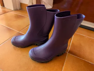 Botas de agua moradas para niña. Decathlon Talla 9/10 equivale a 27/28 - Material de goma. - Suela con buen agarre. - Diseño alto.