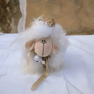 Conjunto de dos pequeñas ovejitas estilo peluche, hechas a mano. Ideales como decoración, escaparates o atrezo de fotografías.