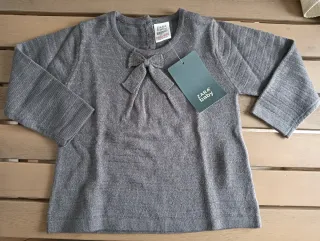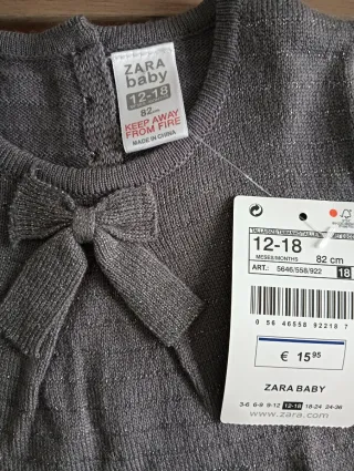 Jersey de punto fino para bebé niña de Zara. - Color gris con hilo plateado. - Detalle de lazada en el cuello. - Manga larga.