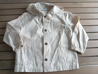 Chaqueta infantil de Zara con diseño de Mickey Mouse. Es de color beige y tiene un tacto suave. - Cierre de botones. - Dos bolsillos delanteros. - Capucha. - Puños elásticos.