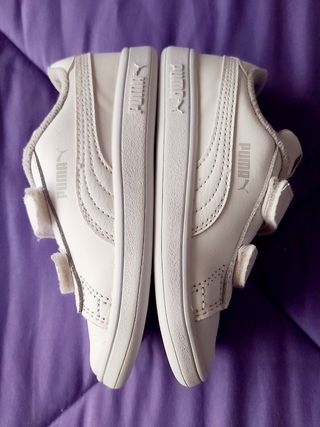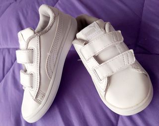Vendo zapatillas Puma para bebé, talla 27. Están en excelentes condiciones, prácticamente nuevas. - Color blanco. - Cierre con velcro.