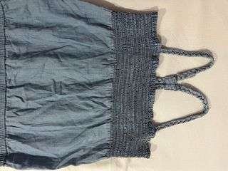 Vestido de estilo vaquero para niña. - Color azul. - Tirantes trenzados. - Cintura elástica. - Bolsillos delanteros.