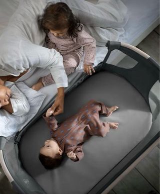 Minicuna Maxicosi Lora Air, perfecta para los primeros meses del bebé. Su diseño permite tener al pequeño cerca. - Estructura de metal y madera. - Laterales de malla transpirable. - Cesta inferior de almacenamiento.