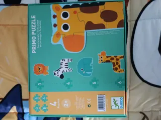 Set de 4 puzzles de la marca Djeco con temática de animales de la selva. Cada puzzle tiene un número de piezas diferente, indicado en la caja. - Incluye 4 puzzles individuales. - Diseños de animales: león, cebra, elefante y jirafa. - Ideal para el desarrollo de la motricidad fina y la lógica. - Marca: Djeco.