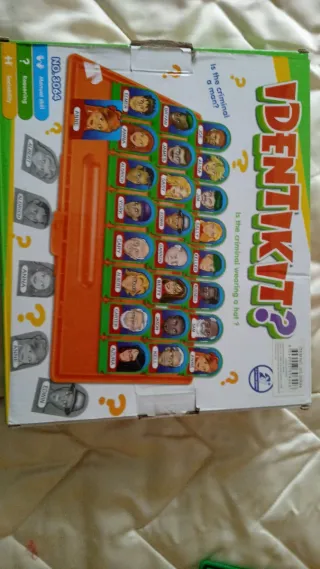Juego de mesa Identikit, perfecto para poner a prueba tu ingenio y deducción. Ideal para jugar en familia o con amigos. - Incluye tablero y fichas de personajes. - Preguntas para adivinar al criminal: ¿Es el criminal un hombre? y ¿El criminal lleva sombrero?.