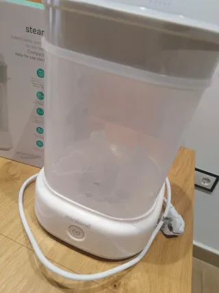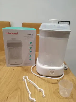 Esterilizador compacto de la marca Miniland, modelo Steamy. Incluye pinzas y vaso medidor. - Diseño compacto y fácil de usar. - Color blanco y gris.