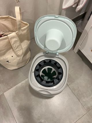 Papelera de pañales con un diseño moderno y funcional. - Color menta y gris. - Tapa abatible.