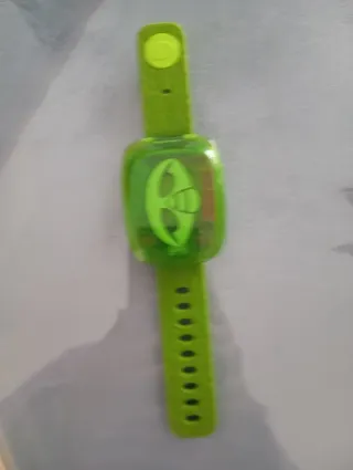 Reloj de juguete de color verde brillante, con un diseño divertido y transparente. - Correa ajustable con múltiples orificios. - Esfera con un diseño interior llamativo. - Material de plástico resistente.