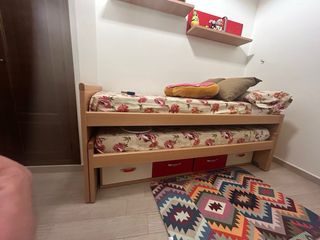 Litera de madera con dos camas y espacio de almacenamiento. - Incluye cuatro cajones en la parte inferior. - 2 Colchones 90 incuidos Medidas : Largo :203cm Ancho:102cm Alto:90cm