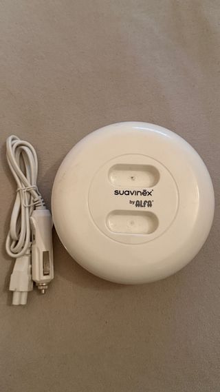 Calienta biberones de la marca Suavinex by Alfa, en perfecto estado. - Color blanco. - Diseño redondo. - Incluye cable de alimentación.