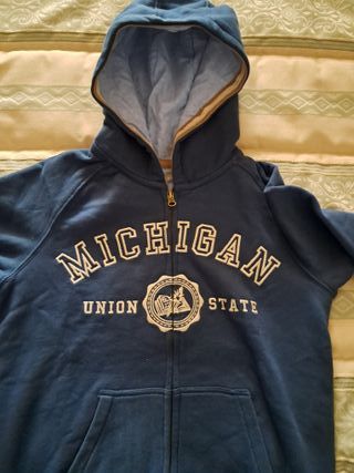 Sudadera azul, con cremallera. De la marca Champion. Lleva capucha y bolsillos. Talla 13-14 años. Muy bonita y en perfecto estado.