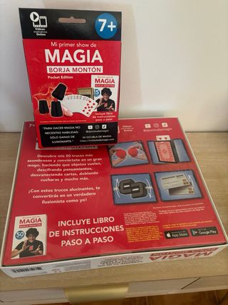 Kit de magia Mi primer show de magia de Borja Montón. Incluye 50 trucos. - Edición Pocket. - Incluye acceso a tutoriales en YouTube. - Descargable en App Store y Google Play. Incluye la caja grande con 50 trucos y tb la Pocket Edition con 15 trucos más. Todo esta nuevo , sin quitar el precinto