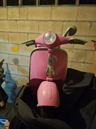 Preciosa moto Vespa de Nancy en color rosa y blanco, en buen estado. Incluye varios accesorios: un maletín, una pequeña jaula para mascotas, una bolsa y un libro. Incluye varios accesorios temáticos de Nancy.