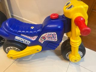 Moto correpasillos para niñas, en color rosa y azul. Está en buen estado. - Ideal para que los más pequeños se diviertan. - Diseño de moto deportiva. - Llantas resistentes.
