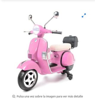 Preciosa moto Vespa rosa para niñas, en perfecto estado. Es ideal para que las más pequeñas de la casa disfruten de sus paseos. - Incluye un portaequipajes trasero. - Diseño clásico y elegante. - Color rosa pastel.