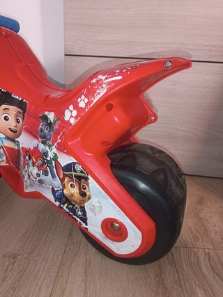 Moto infantil de Paw Patrol, usada pero en buen estado. Tiene algunos rasguños en la pintura, tal como se ve en las fotos. - Ideal para niños pequeños. - Diseño de Paw Patrol. - Color rojo.