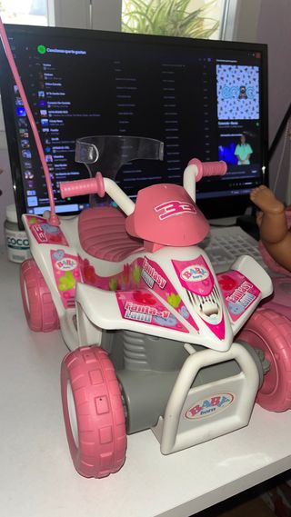 Preciosa moto rosa para muñecas Baby Born, en perfecto estado. Incluye una muñeca Baby Born. - Moto teledirigida. - Color rosa. - Incluye una muñeca.