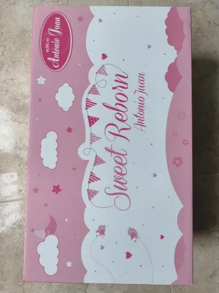 Muñeco bebé Reborn, modelo Antonio San Juan. Tiene un aspecto muy realista y está vestido con un pijama rosa. - Pijama rosa con detalles plateados. - Expresión facial detallada.