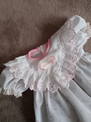 Vestido blanco para muñeca con delicados detalles original de Nenuco de Famosa . Creo que será de los años 70 porque es de los antiguos . - Estampado de pequeños lazos rosas. - Cuello y mangas con volantes. - Adorno de encaje en el bajo. - Detalle de etiqueta con nombre. Hago envíos por Wallapop y también por correo ordinario y pago por Bizum. Mimitos Mocosete Arias Mattel Disney Paola Reina Antonio Juan Barruiguitas Nancy Leslie Barby Reborn Baby Zapp Toyse Furga falca juguete peluche Arias Antonio Juan Barruiguitas Cuna cacharritos biberón Toyse Rebon Fulca Farga Hello kitty Paola Reina Mariquita Pérez Juanin Imaginarium Toyse