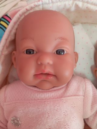 Conjunto de muñecos reborn con sacos. - Varios muñecos tres Antonio juan y uno arias. Uno grande y el pequeño cuerpo blando los otros de tela - Incluye2 sacos para los muñecos rosa y azul y uno pequeño musical para el muñeco pequeño. Van dos mantitas y dos capazos. No envio, no negociable
