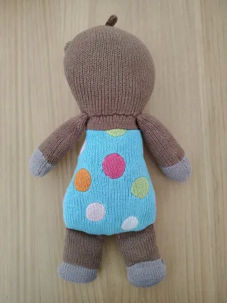 Creo lotes con descuento: 2 artículos 5%, 3 art. 10% y 5 art. 15%. Adorable muñeco de punto con forma de rinoceronte. Lleva puesto un peto azul con lunares de colores. - Material: Tejido de punto. - Diseño: Rinoceronte. - Ropa: Peto azul con lunares (naranja, rosa, verde, blanco, rosa pálido).