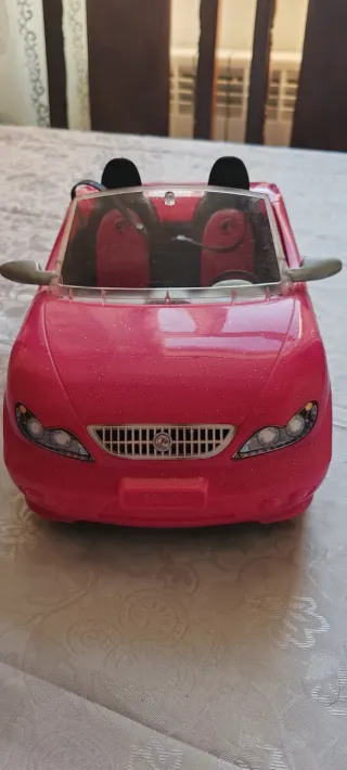 Este es un coche descapotable de Barbie en color rosa brillante. Coche: 15 euros Con los muñecos: 30 euros - Diseño deportivo y llamativo. - Asientos detallados en color rosa y negro. - Parabrisas transparente. - Ruedas negras.