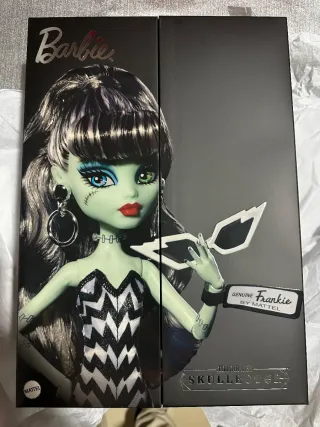 Muñeca Monster High Skullector Frankie Stein, en colaboración con Barbie por el 80 aniversario de Mattel. • Mide 10,5 pulgadas y tiene 11 puntos de articulación. • Mono y accesorios inspirados en la Barbie original de 1959. • Vestido negro inspirado en la Barbie "Solo in the Spotlight" de 1960. • Packaging coleccionable con fotografia "gore-geous". • Incluye Certificado de Autenticidad. Solo se ha abierto la caja de Mattel en la que venía para las fotos, el resto está intacto.