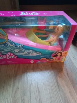 Barco de Barbie con muñeca incluida, listo para la diversión acuática. - Diseño colorido y atractivo. - Incluye accesorios para jugar. - Edad recomendada: 3+ años.