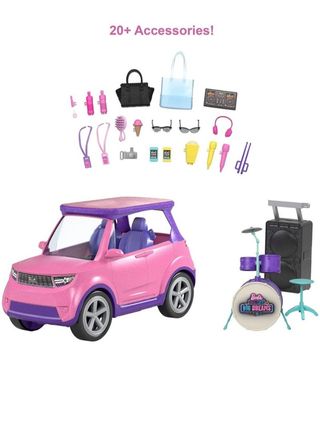 Coche Barbie Rosa, Muñecas y Perro Y juego de mesa