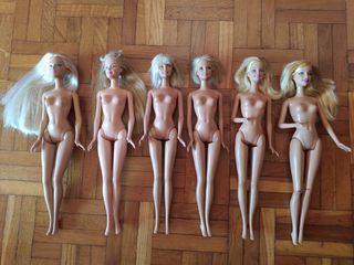 Seis maniquíes muñeca Barbie Mattel 1999. En muy buen estado salvo que todas tienen el pelo recortado. La de las rodillas articuladas tiene flojas las articulaciones de las rodillas. Precio por el lote de seis.