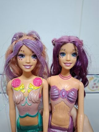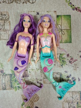 Muñecas Barbie sirenas en buen estado. Algunos elásticos se cambiaron debido al mal estado de los originales. Se venden juntas. Con faldas incluidas.