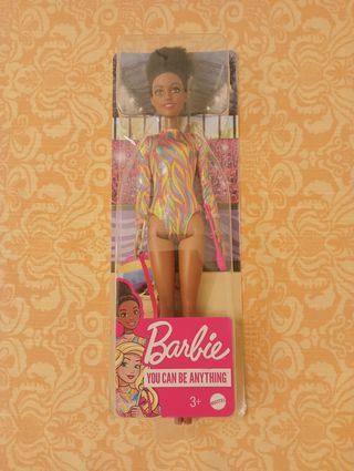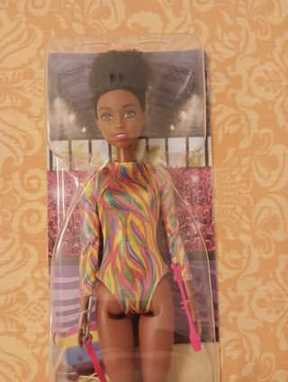 Muñeca Barbie negrita gimnasia artística. Nueva en su blíster.